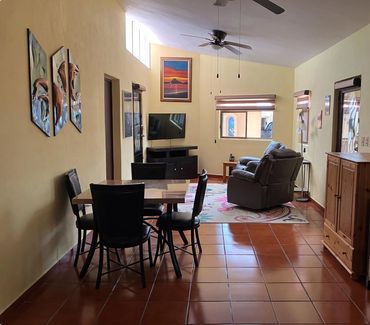 Cute 2-bedroom 2-bath home. Home comes fully furnished and has a cute permanent covered table on the back patio. Home offers 1 car parking, margarita deck, bodega, refridgerator, stove, and washing machine. Membership paid thru 2044.